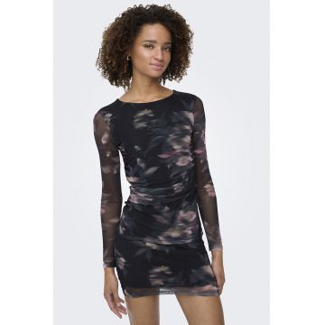 Rochie-pulover cu decolteu la baza gatului si aspect texturat