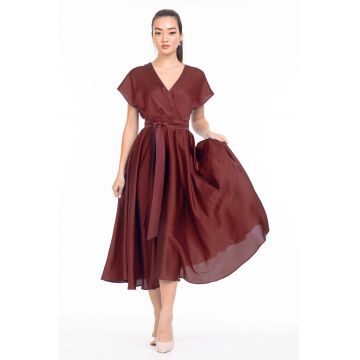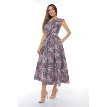 Rochie midi cu aspect de catifea - croiala evazata si buzunare laterale